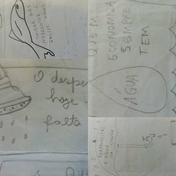Os alunos fizeram uma investigação por toda a escola em busca dos pontos de água e a procura de algum problema como vazamentos ou entupimentos, após constatarem alguns problemas, escreveram tudo em papel para que buscássemos melhorias. Depois começaram uma campanha boca-a-boca com os colegas pra não desperdiçarem água em especial no horário do recreio, momento que viram maior desperdício de água, com torneiras abertas e alunos jogando água uns nos outros. Construímos alguns cartazes para afixar acima dessas torneiras, lembrando a importância do consumo consciente.