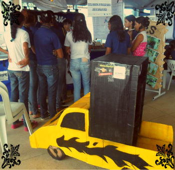 este carro foi feito para a semana de meio ambiente. é todo de papelão.