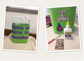 2.Agora, vamos enfeitar o balde? Vale colagem, pintura, etiquetar, grafite... fica a critério de vocês como personalizar o seu projeto.