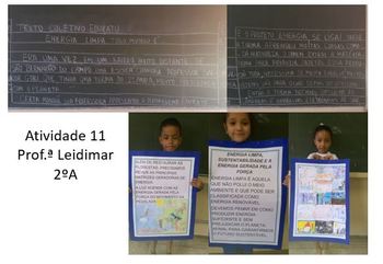 Texto coletivo - Edukatu Energia limpa, tudo mundo é.... Era uma vez em um bairro muito distante de São Bernardo do Campo, uma escola chamada Professor Salvador Gori que tinha uma turma do 2° ano A , muito preocupada com o planeta Terra. Certo dia sua professora apresentou a plataforma Edukatu e o projeto Energia. Se liga ! Onde a turma aprendeu muitas coisas como : da natureza o homem extrai a matéria- prima para produzir diferentes objetos. Essa produção toda necessita de muita energia, muitos objetos depois de usado são jogados no lixo. Então a turma decidiu; sempre desligar as lâmpadas e aparelhos eletrônicos ao sair, não demorar no chuveiro, utilizar lâmpadas LED, não ligar vários aparelhos na mesma tomada, reciclar os resíduos e utilizar energia limpa, pois a força humana também é capaz de produzir energia. A turma refletiu sobre o consumismo da sociedade em geral , dos próprios hábitos e viveram felizes para sempre.