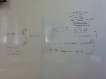Pesquisamos e montamos o ciclo de vida do lápis, do caderno e da garrafa pet.