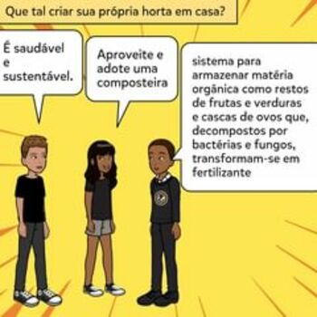 Vale desenhar, ou usar sites gratuitos para montar sua HQ, como o Pixton ou o Meu Gibi.