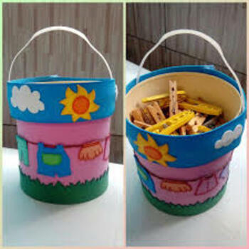 2.Agora, vamos enfeitar o balde? Vale colagem, pintura, etiquetar, grafite... fica a critério de vocês como personalizar o seu projeto.